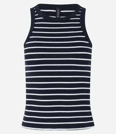 Blusa Regata Básica em Ribana Listrada