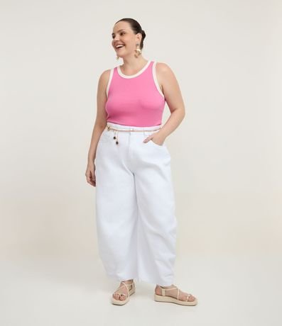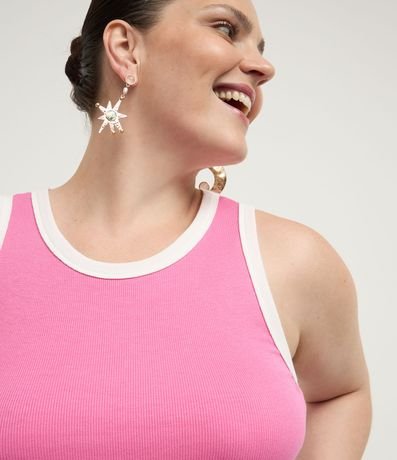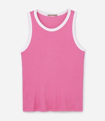 Ref: Blusa regata plus size, confeccionada em viscose, com gola redonda e textura canelada. Peça tem contraste na gola e nas cavas. Este produto possui viscose certificada em sua composição, além de ter sido produzido através de processos mais sustentáveis, sendo ambientalmente mais responsável.