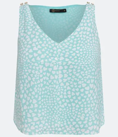Blusa Regata com Estampa de Corações e Botões na Alça