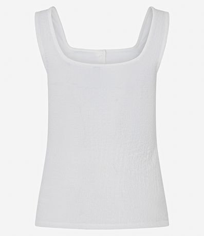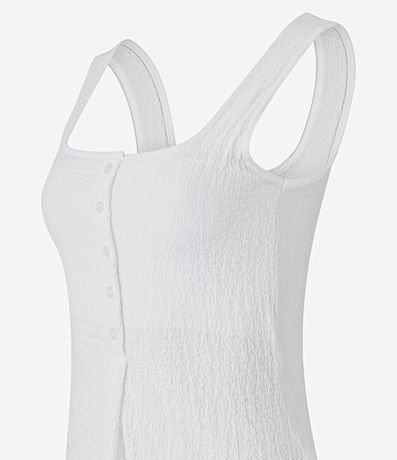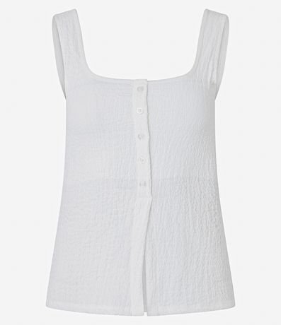 Ref: Blusa feminina regata com textura, decote quadrado, alça média e abotoamento frontal.