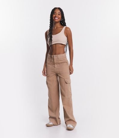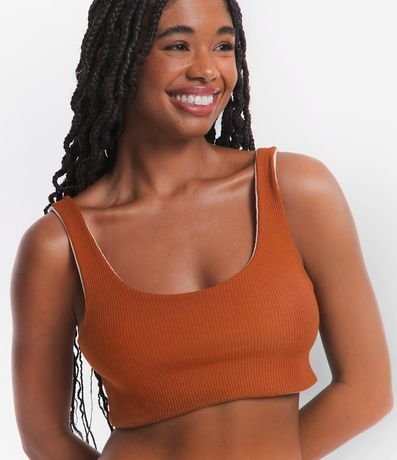 Ref: Blusa regata cropped em tecido misto e textura canelada com dupla face. Contém material responsável na composição.