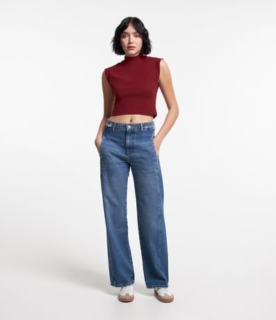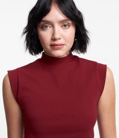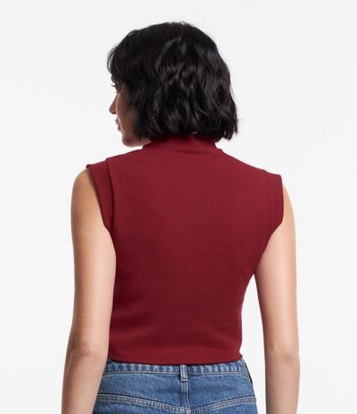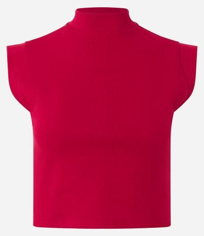 Blusa regata, cropped, gola alta, confeccionada em ribana e sem estampa.