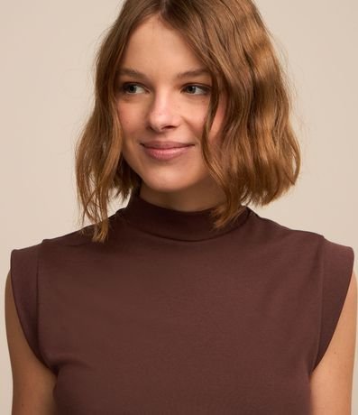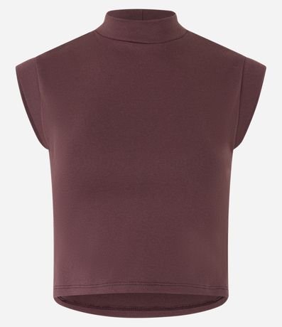 Ref: Blusa regata, cropped, gola alta, confeccionada em ribana e sem estampa.