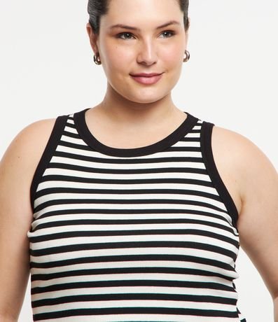 Blusa Regata Cropped em Ribana Listrada & Plus Size