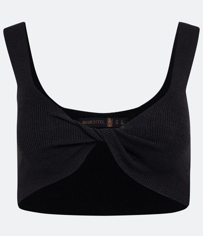 Blusa Regata Cropped em Tricô com Busto Torcido