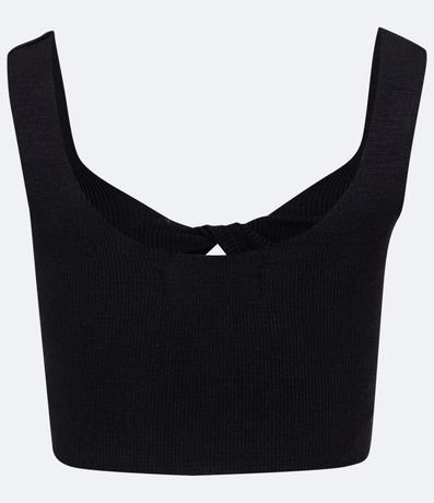 Blusa regata cropped em tricô com busto torcido.