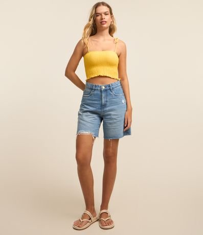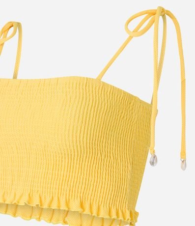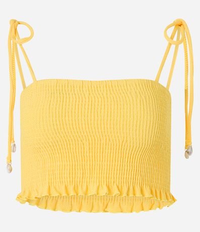 Blusa cropped com decote quadrado e alças finas. O modelo, que é uma tendência da estação, traz ao look muita delicadeza e estilo. O lastex no corpo e as alças com amarração oferecem conforto e uma ótima vestibilidade. Combine com shortinho cintura alta e tenha um look fresquinho e cheio de personalidade.