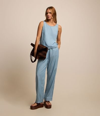 Blusa Regata em Jeans com Recortes