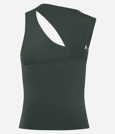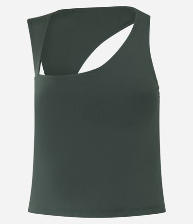 Ref: Blusa feminina confeccionada em microfibra sem manga com decote assimétrico.