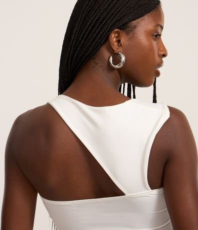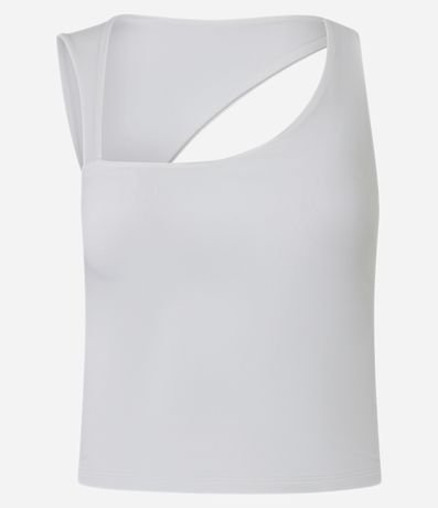 Ref: Blusa feminina confeccionada em microfibra sem manga com decote assimétrico.