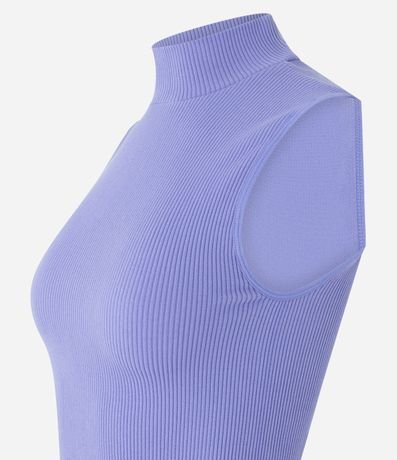 Blusa Regata em Poliamida Canelada Sem Costura e com Golinha Alta