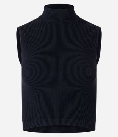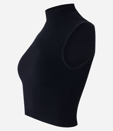 Blusa Regata em Poliamida Canelada Sem Costura e com Golinha Alta