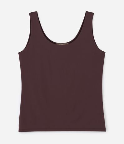 Ref: Blusa regata em poliamida com decote U, alças largas e sem estampa.