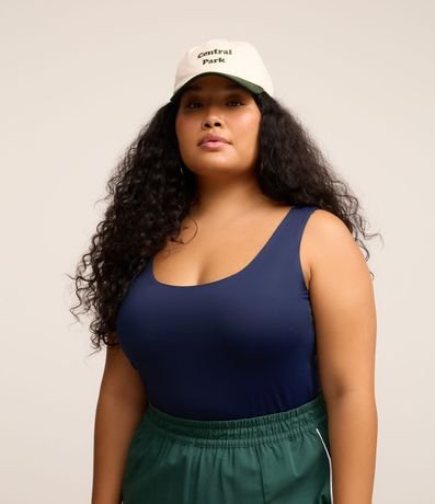 Ref: Blusa regata em poliamida com decote U, alças largas e sem estampa.