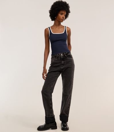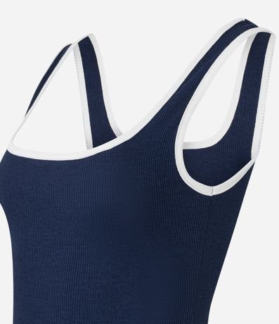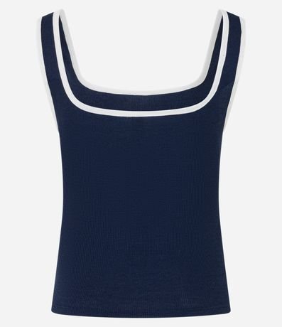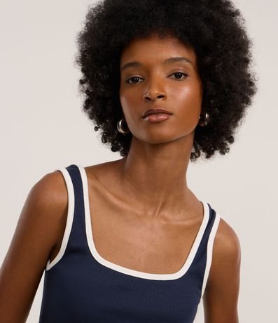 Ref: Blusa feminina de modelo regata, confeccionada em malha ribana, com decote quadrado e acabamento com vivos contrastantes.