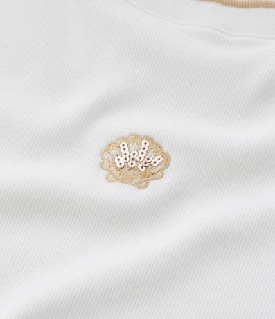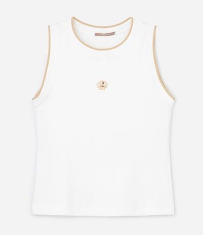 Ref: Blusa regata confeccionada em ribana mais sustentável através de boas práticas ambientais, garantindo conforto e sustentabilidade. Possui bordado delicado de concha na parte frontal, acabamento contrastante na gola e modelagem especial Curve & Plus Size, ideal para compor looks casuais elegantes.