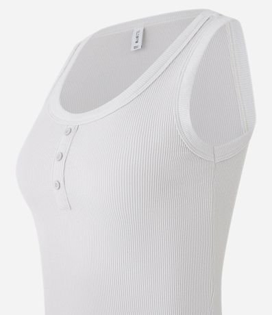 Ref: Blusa feminina confeccionada em ribana mais sustentável com boas práticas ambientais, peça com gola redonda com botões.