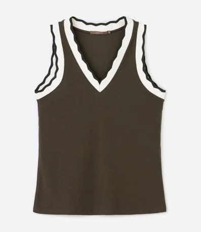 Blusa Regata em Ribana com Gola V em Retilínea Curve & Plus Size