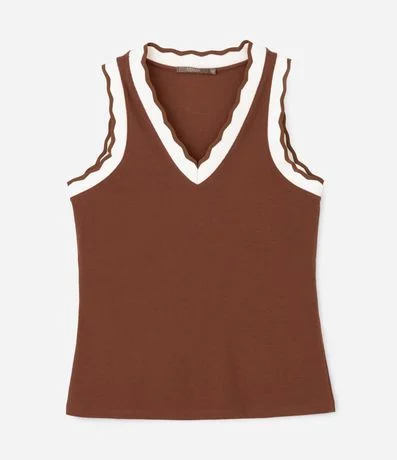 Blusa Regata em Ribana com Gola V em Retilínea Curve & Plus Size