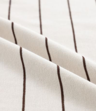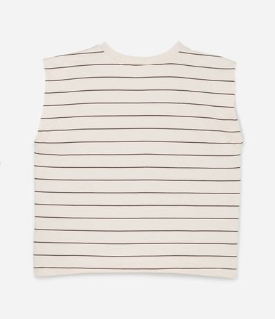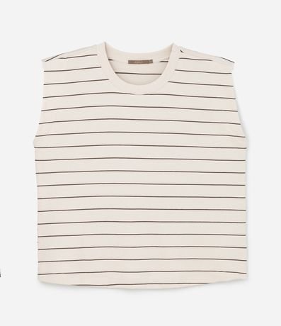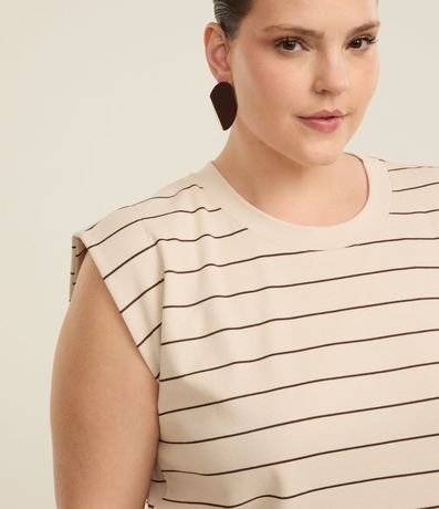 Blusa plus size feminina confeccionada em malha ribana de algodão, com gola redonda e sem mangas. Possui padronagem de listras finas na horizontal.