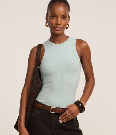 Blusa regata confeccionada em ribana, com gola redonda e textura canelada. Este produto possui viscose certificada em sua composição, sendo ambientalmente mais responsável.