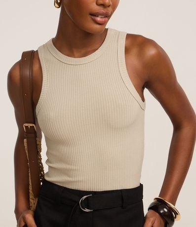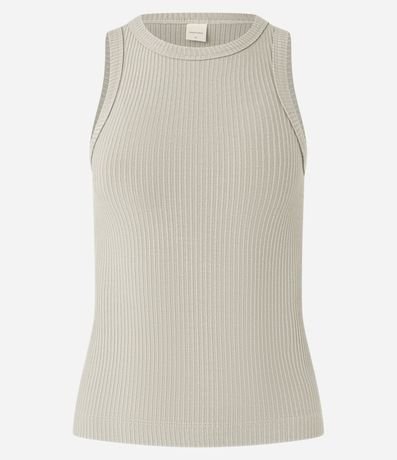 Blusa regata confeccionada em ribana, com gola redonda e textura canelada. Este produto possui viscose certificada em sua composição, sendo ambientalmente mais responsável.