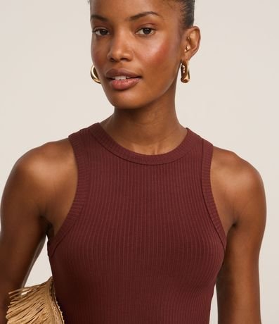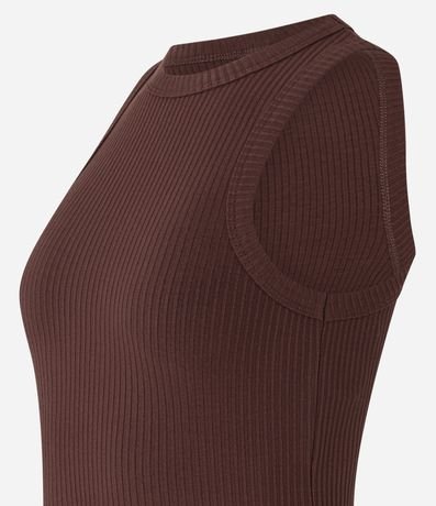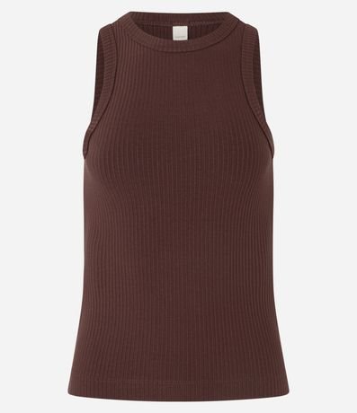 Blusa regata confeccionada em ribana, com gola redonda e textura canelada. Este produto possui viscose certificada em sua composição, sendo ambientalmente mais responsável.