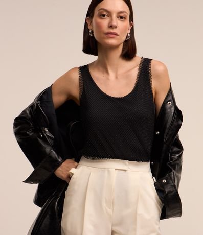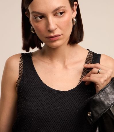 Ref: Blusa regata feminina, confeccionada em tela, com decote redondo, alças médias e transparência sem forro!