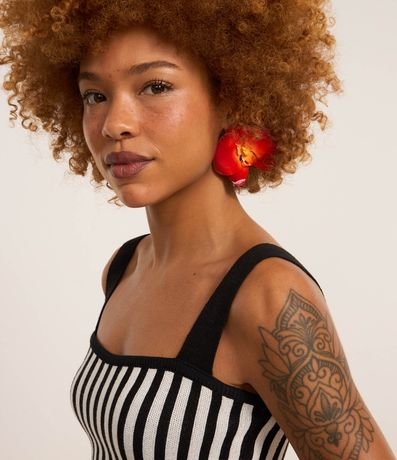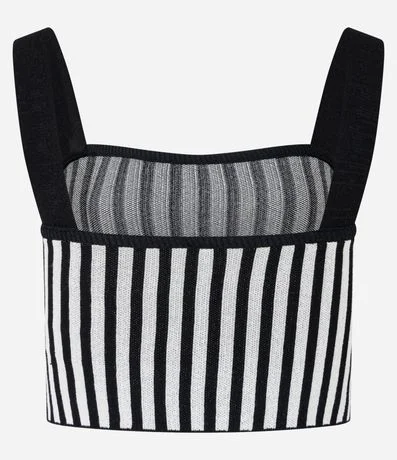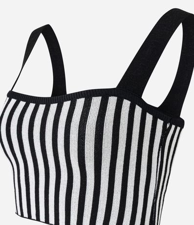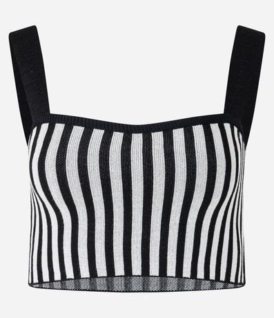 Blusa feminina confeccionada em tricô de viscose certificada em boas práticas ambientais, peça no modelo regata com alças largas, decote arredondado e estampa listrada vertical.