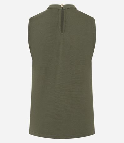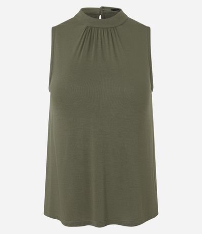 Ref: Blusa regata em viscolycra, com golinha alta e preguinhas. Possui abertura em gota nas costas com abotoamento duplo.