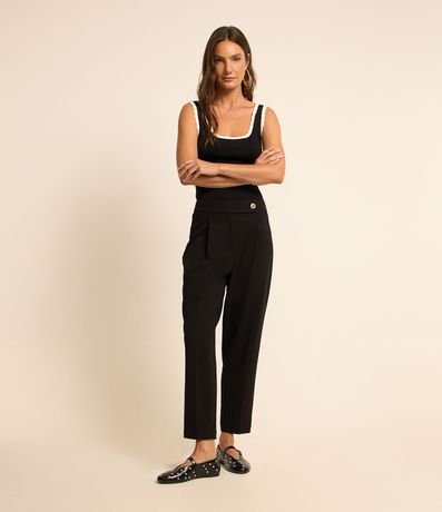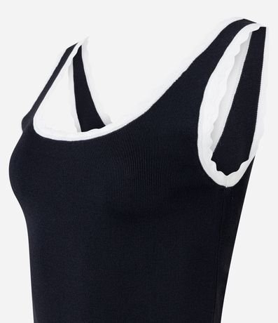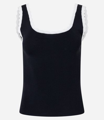 Ref: Blusa regata feminina, confeccionada em viscose, com decote redondo, alças médias e detalhes de ondinhas.