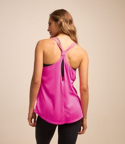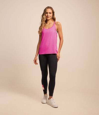 Ref: Regata esportiva confeccionada em microfibra, com alças finas e duplas, e recorte vazado nas costas.