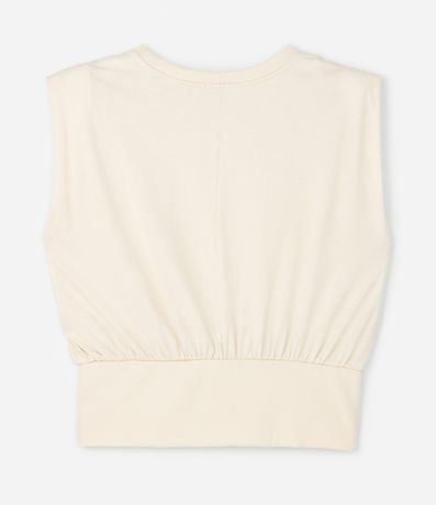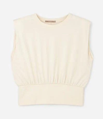 Ref: Blusa plus size sem manga, confeccionada em malha de algodão certificado, com gola redonda e de modelo muscle. Sem estampa, possui barra larga e franzidos.