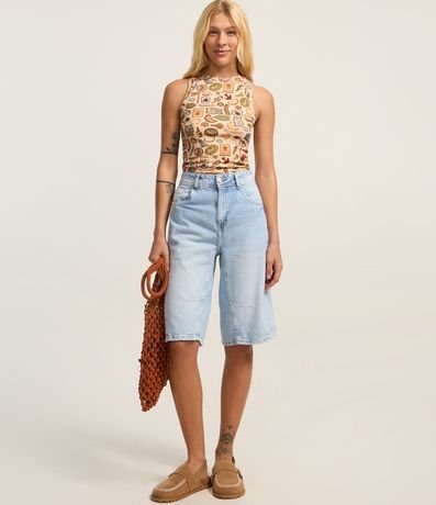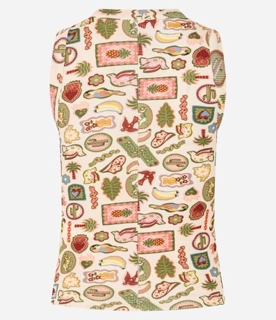 Ref: Blusa regata, toda confeccionada em ribana de viscose certificada, com 02% de elastano. Peça conta com textura toda canelada e estampa com diversos ícones divertidos.