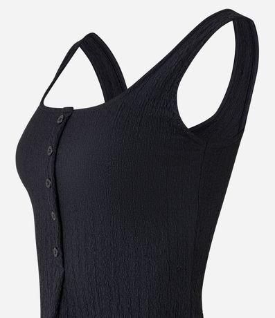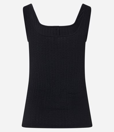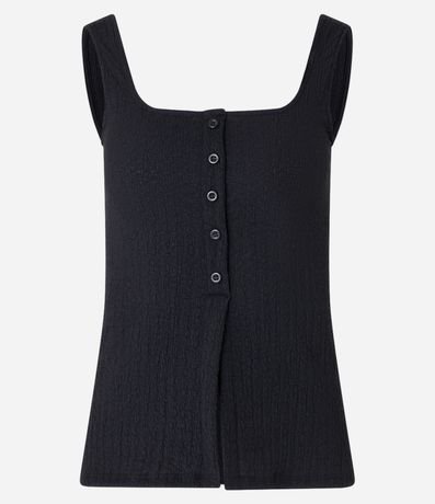Ref: Regata feminina confeccionada em poliéster texturizado, com decote quadrado e alças largas. Sem estampa, possui detalhe de abotoamento frontal no busto e abertura.
