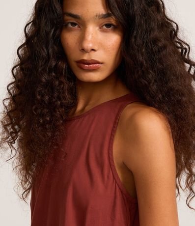 Ref: Blusa feminina confeccionada em chalis mais sustentável, no modelo regular. Possui gola redonda, sem mangas, sem estampa e com fechamento por botão nas costas.