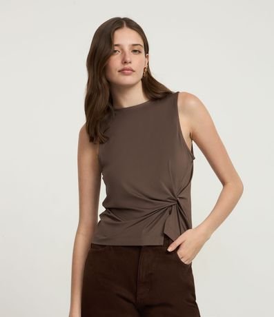 Ref: Blusa feminina confeccionada em helanca, com decote canoa e detalhe de torção lateral que valoriza a silhueta. Modelo regular, sem mangas, ideal para compor looks modernos e confortáveis. Desenvolvida com boas práticas ambientais para um consumo mais consciente.