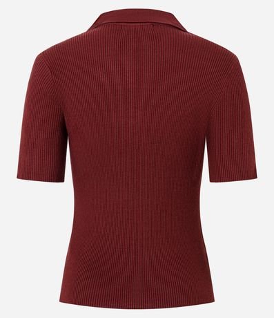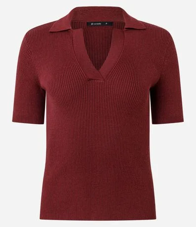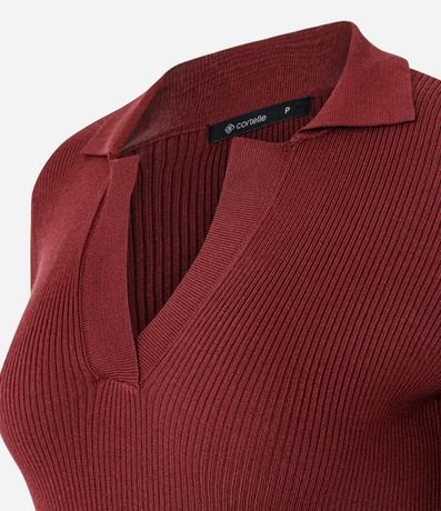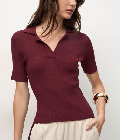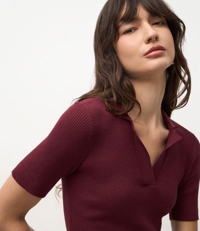 Ref: Blusa feminina de tricô com manga curta, textura canelada e gola polo estruturada. Possui decote em V sem botões, caimento ajustado e acabamento uniforme no corpo e nas mangas.