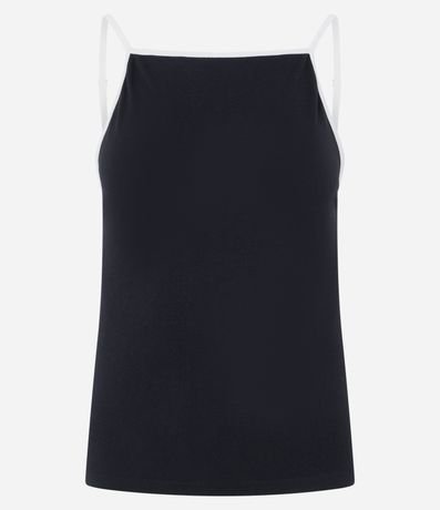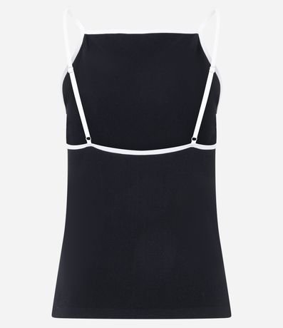 Blusa feminina sem confeccionada em poliamida, sem costura e com alças e viés contrastante.
