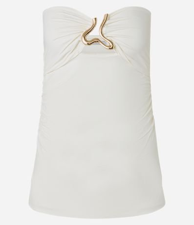 Blusa Sem Alça em Microfibra com Aviamento no Decote