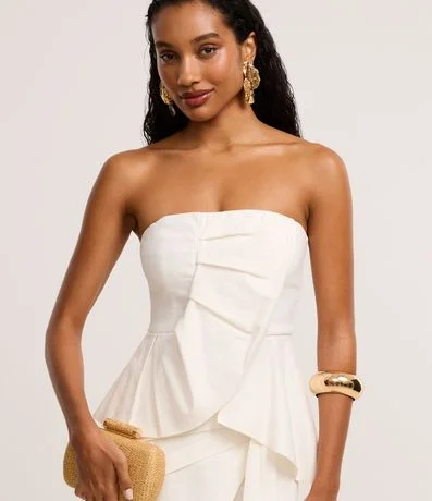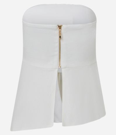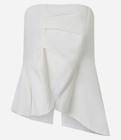 Ref: Blusa sem alças, confeccionada em tricoline, com decote reto, transpasse frontal com recortes, barra assimétrica e fechamento por zíper nas costas. Este produto possui viscose certificada em sua composição, sendo ambientalmente mais responsável.