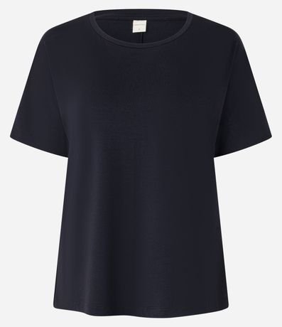Ref: Blusa básica em viscose, com gola redonda e mangas curtas diferenciadas com modelo quadrada e sem cavas.