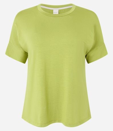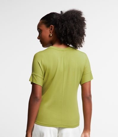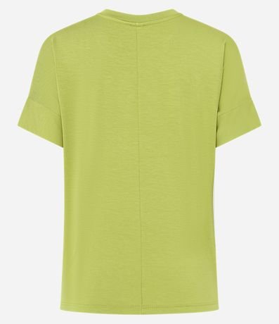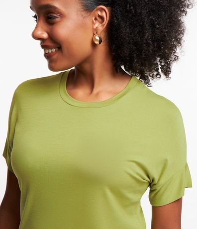 Blusa básica em viscose, com gola redonda e mangas curtas diferenciadas com modelo quadrada e sem cavas.