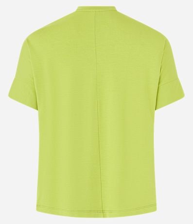 Blusa básica em viscose, com gola redonda e mangas curtas diferenciadas com modelo quadrada e sem cavas.