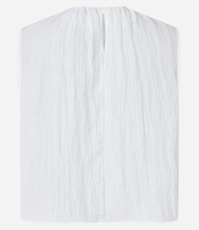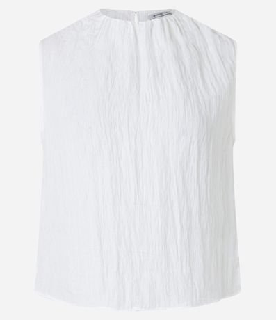 Ref: Blusa feminina acetinada com textura, decote redondo, sem manga.