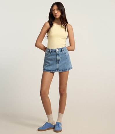 Blusa com alça elástico, confeccionada em algodão mais sustentável e com decote halter.