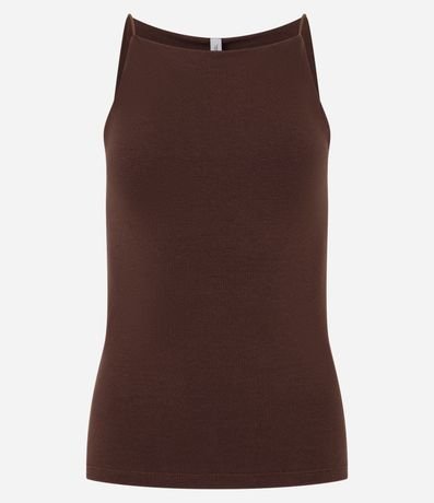 Ref: Blusa com alça elástico, confeccionada em algodão mais sustentável e com decote halter.