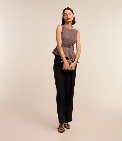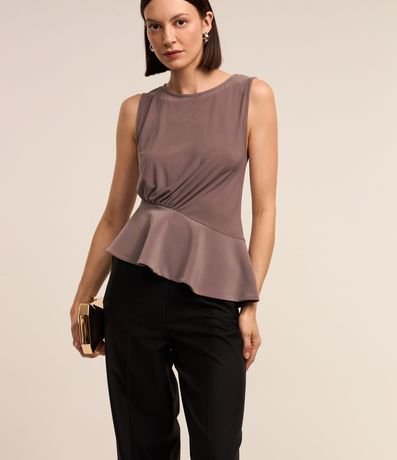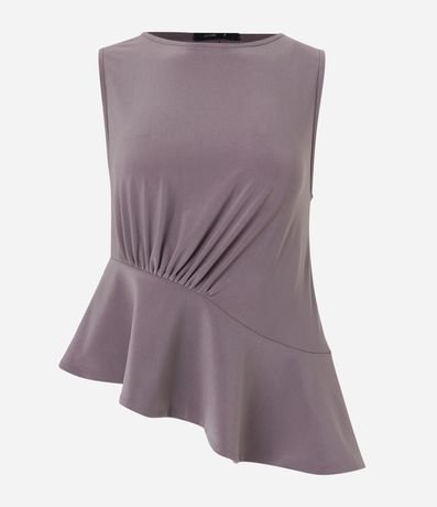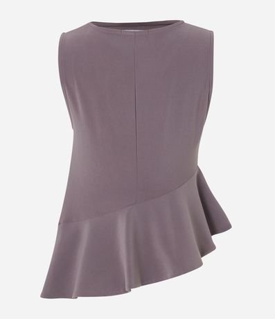 Ref: Blusa sem manga, com gola redonda, mangas sem estampa, com detalhe drapeado na cintura e babado assimétrico.