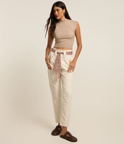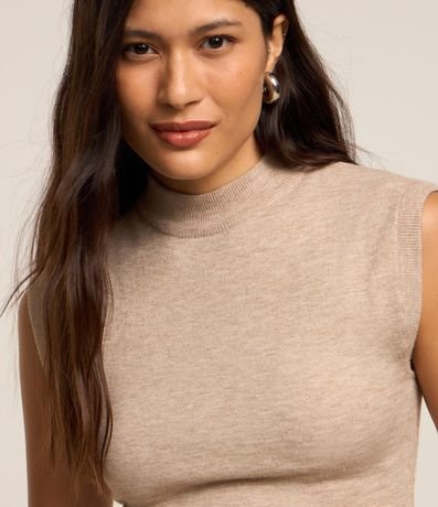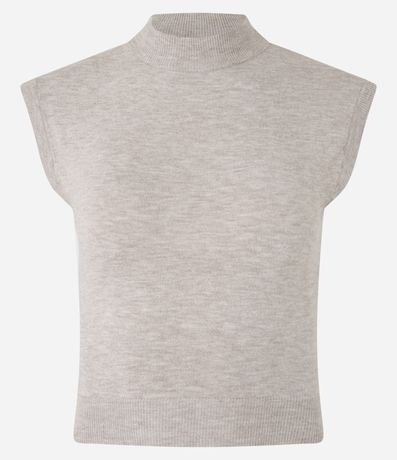 Ref: Blusa sem manga, cropped com golinha alta, confeccionada em tricô e sem estampa.