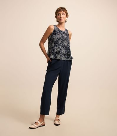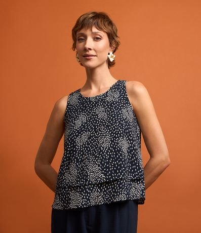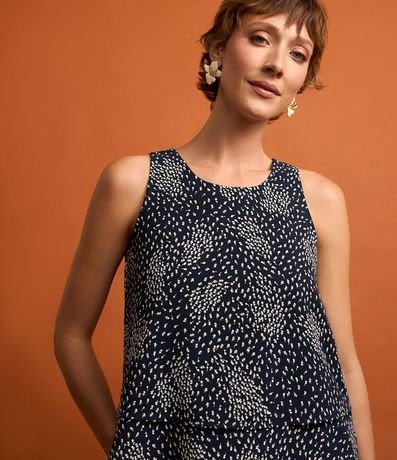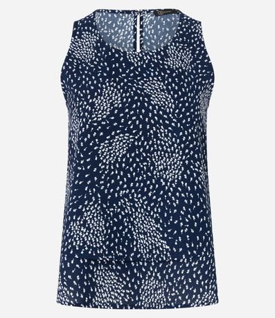 Ref: Blusa feminina, confeccionada em airflow, com gola redonda, sem mangas e estampa de mini flores.